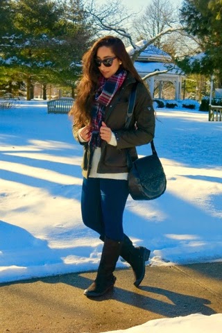 On to my footwear, my sister just got me these snow boots from Sorel and it was just in time for our biggest snow storm of the season. They still have the look of the typical Sorel snow boot but with a little more of a feminine touch! AND they’re completely waterproof!