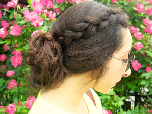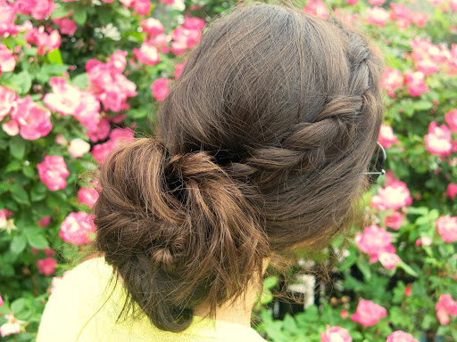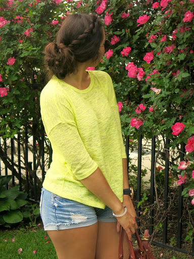 I tried for comfortable and practical, but still cute. Since it was a little overcast and not that warm, I balanced my outfit with this light sweater from Forever 21 and shorts. And of course, the neon yellow added some brightness to the day 🙂 I also wanted my hair secure and out of my face so I did this fun side, dutch braid and a low bun.