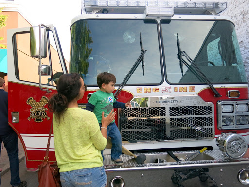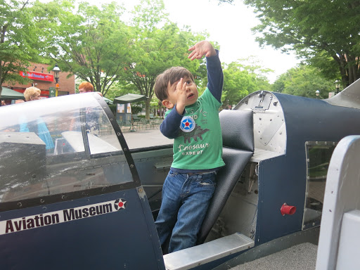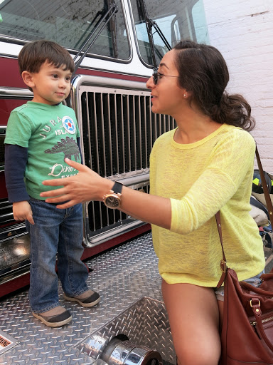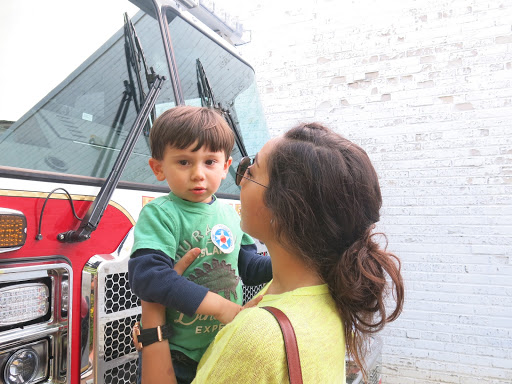 We had lunch, walked around a little, and then stopped at this fun street fair that was happening in the area. They had airplanes to sit in and the local firehouse brought out two firetrucks for kids to play on, so of course Leo went nuts climbing on everything and looking around! It was so cute 🙂