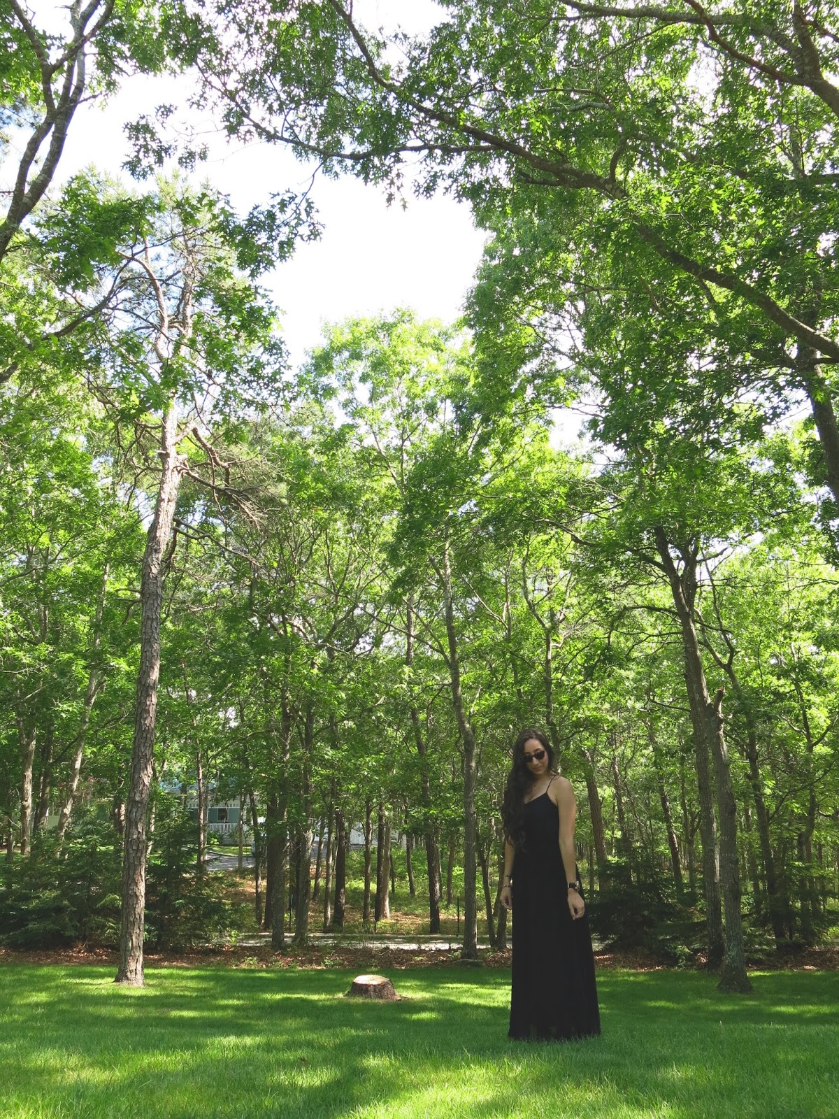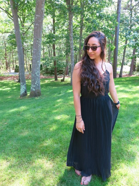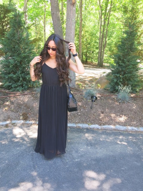I wore this light and flowy black maxi dress and my favorite Patricia Nash bag, along with some comfy flat sandals. I love a good all-black outfit and this was the perfect one for the day!