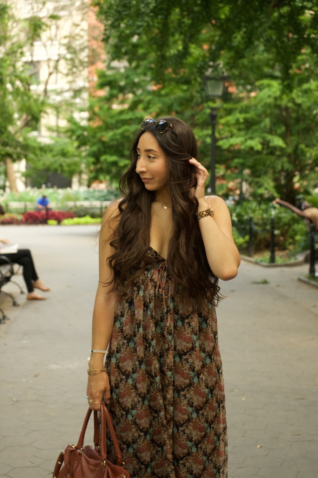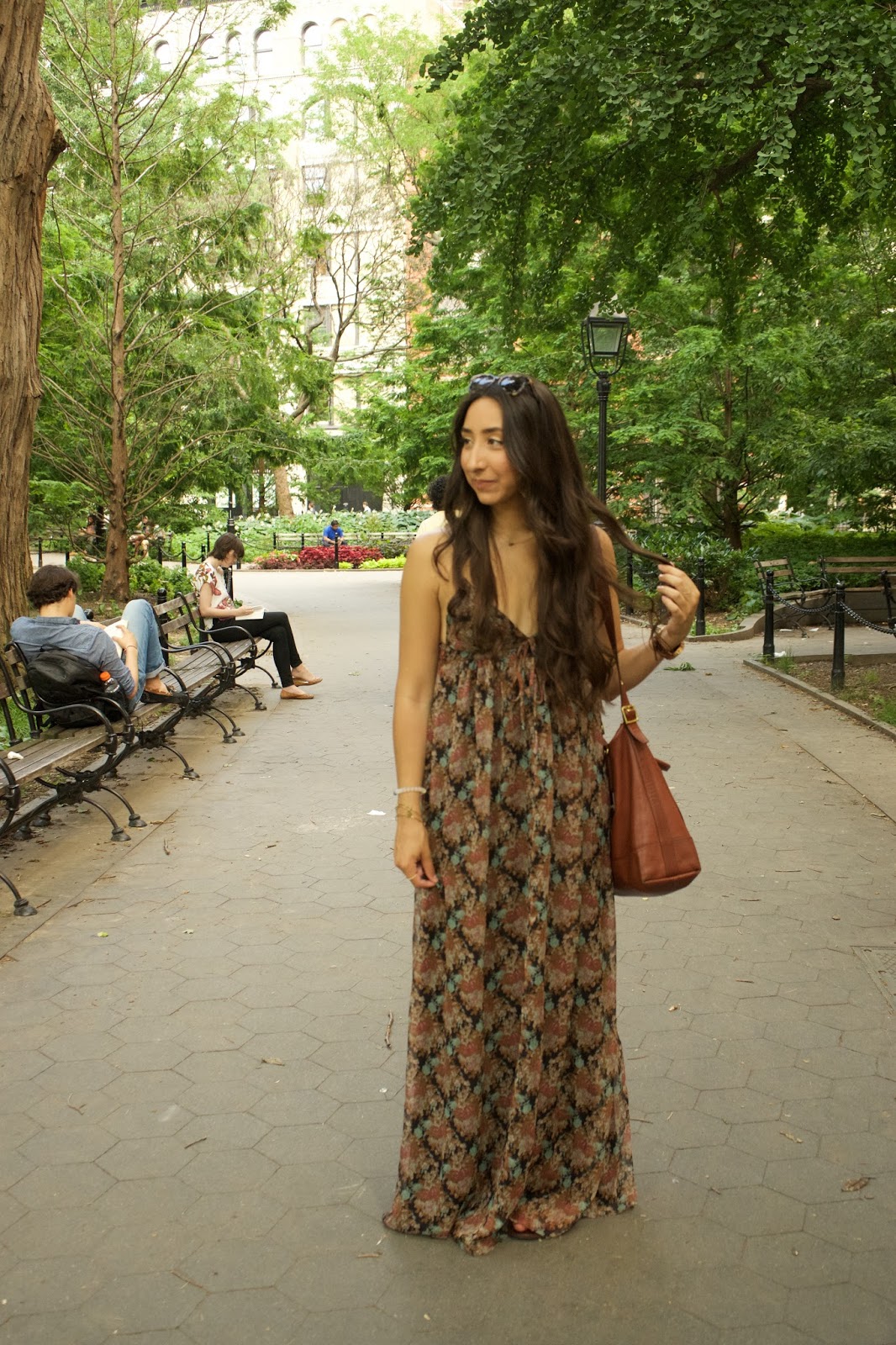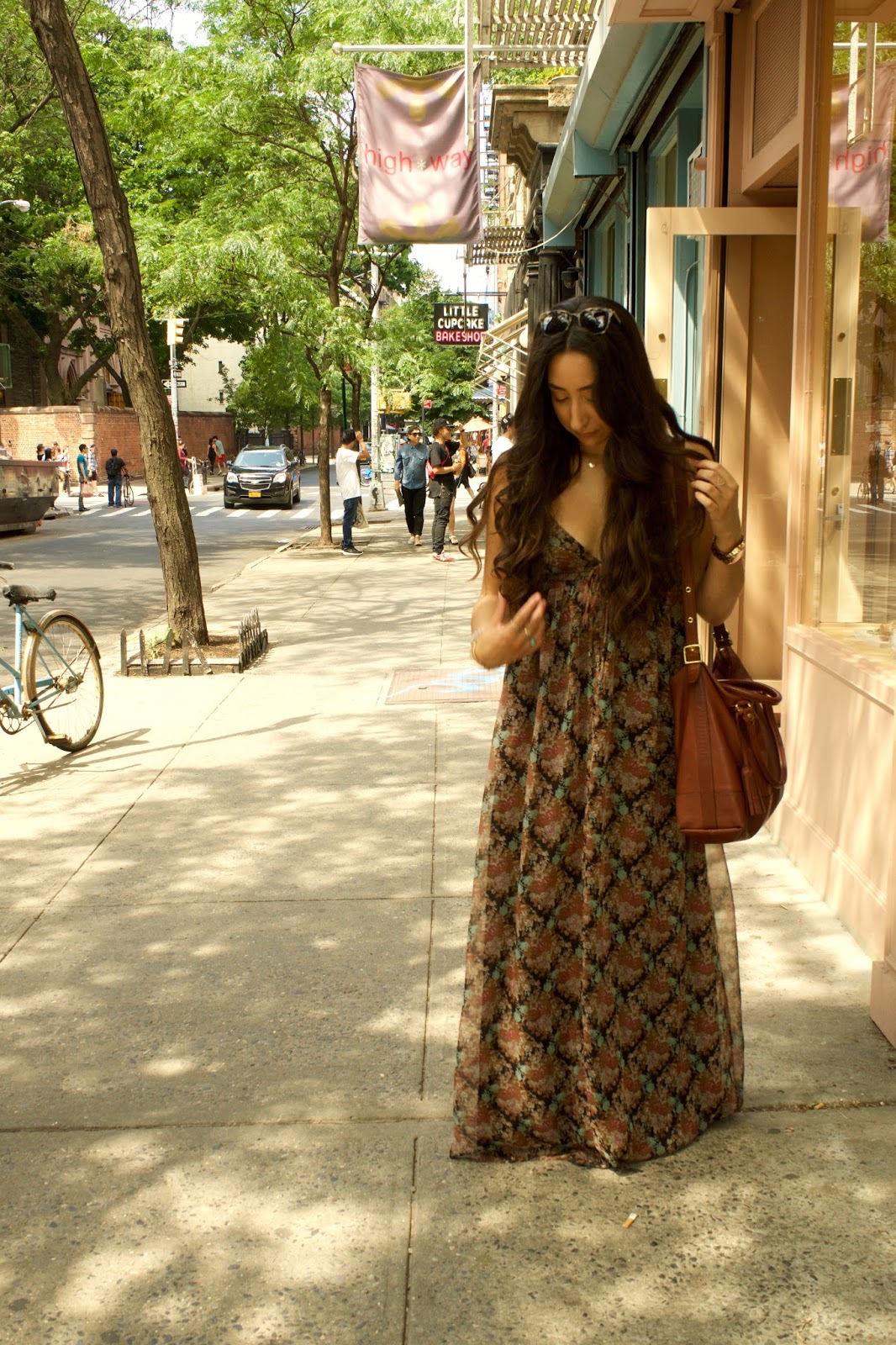 A good maxi dress is a staple in any girl’s wardrobe. They’re light, cool, and most importantly, they hide all flaws :)))))) No but seriously, they’re just amazing because they can be dressed up or down and either way, you look put together (when in all reality, did you really try? No? Perfect.) As soon as I saw this one it caught my eye with its pattern and neutral color scheme. It was the perfect dress for a day in the city, just walking around, getting lunch, and hanging out.