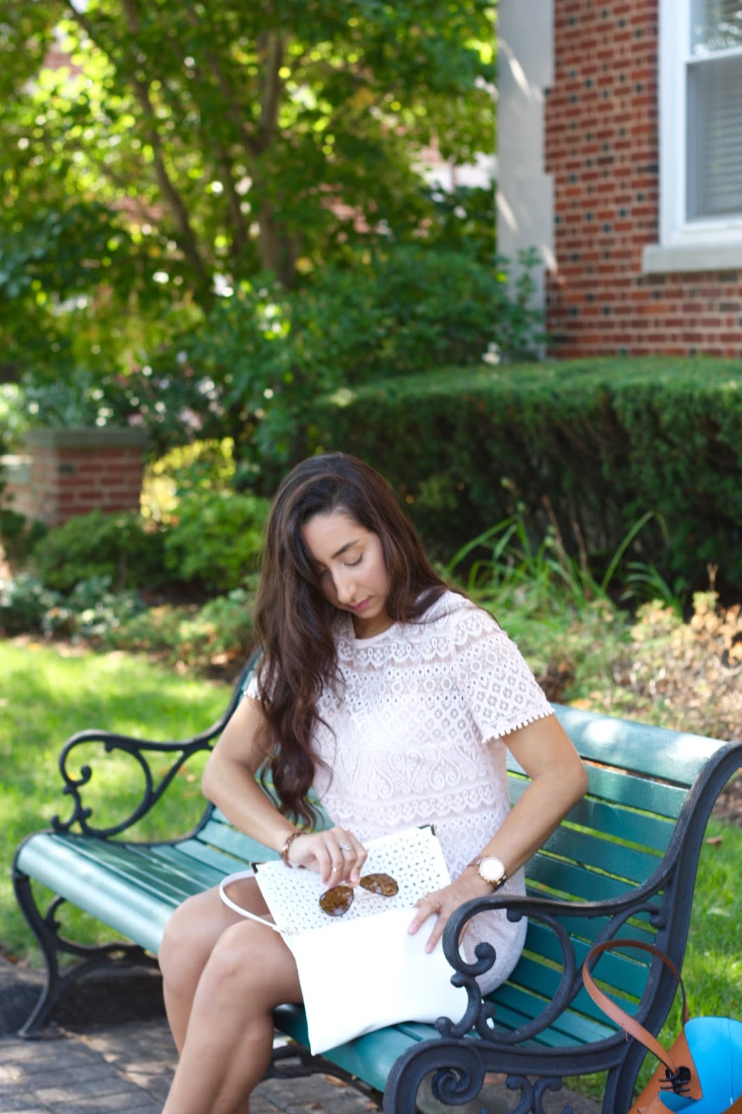Oversized clutches are the best because you don’t have to worry about what you’re going to leave out of your bag! I’ve been loving this white one from H&M all summer. It’s the perfect size and comes with a shoulder strap. The color and cute little cutout pattern are so summery, I love it!