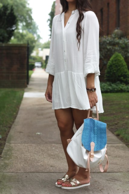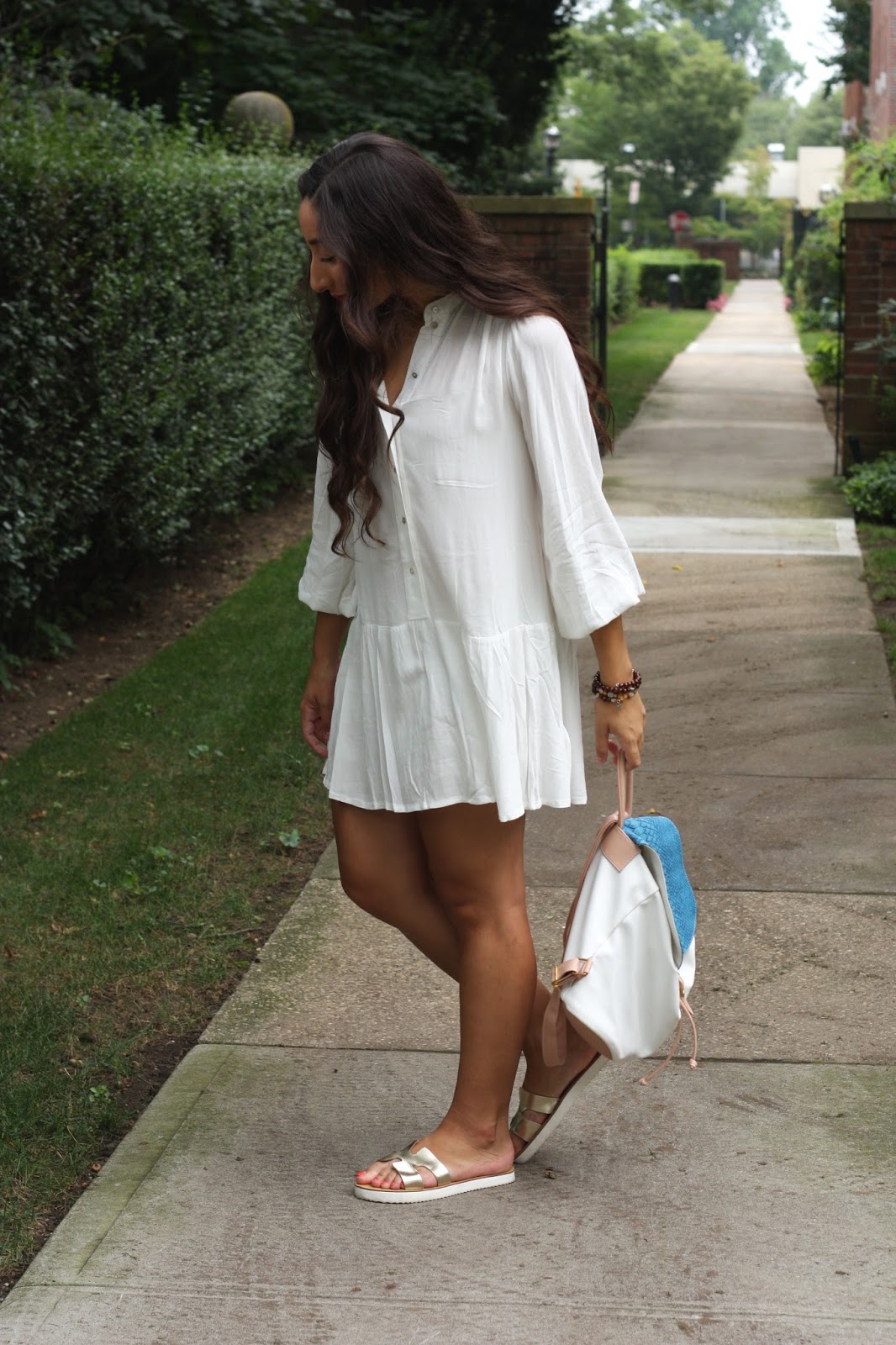 What’s a Labor Day weekend without a lots and lots of white! I styled this flowy little white dress with a collection of some the accessories I accumulated from around the world this summer! Well, just two countries, Greece and Portugal 🙂