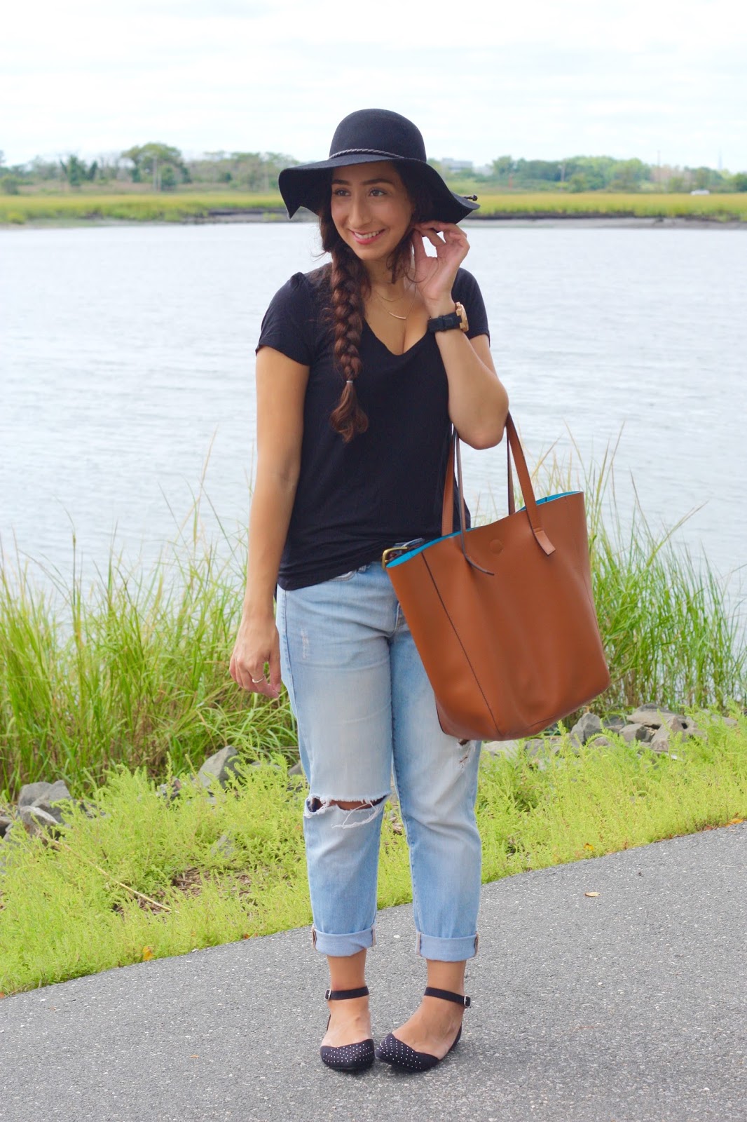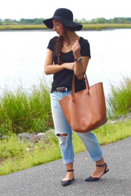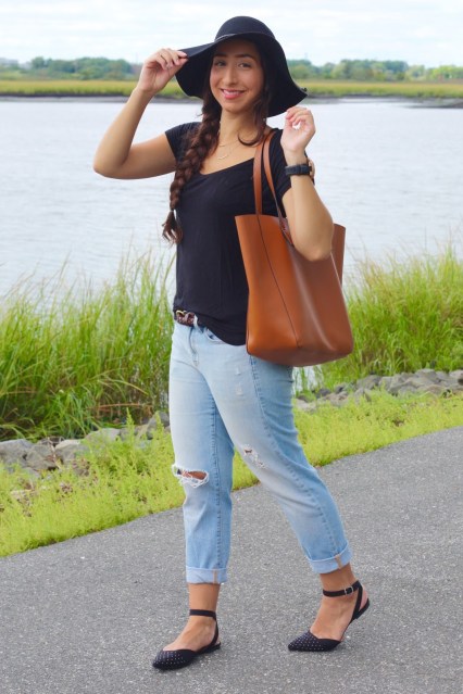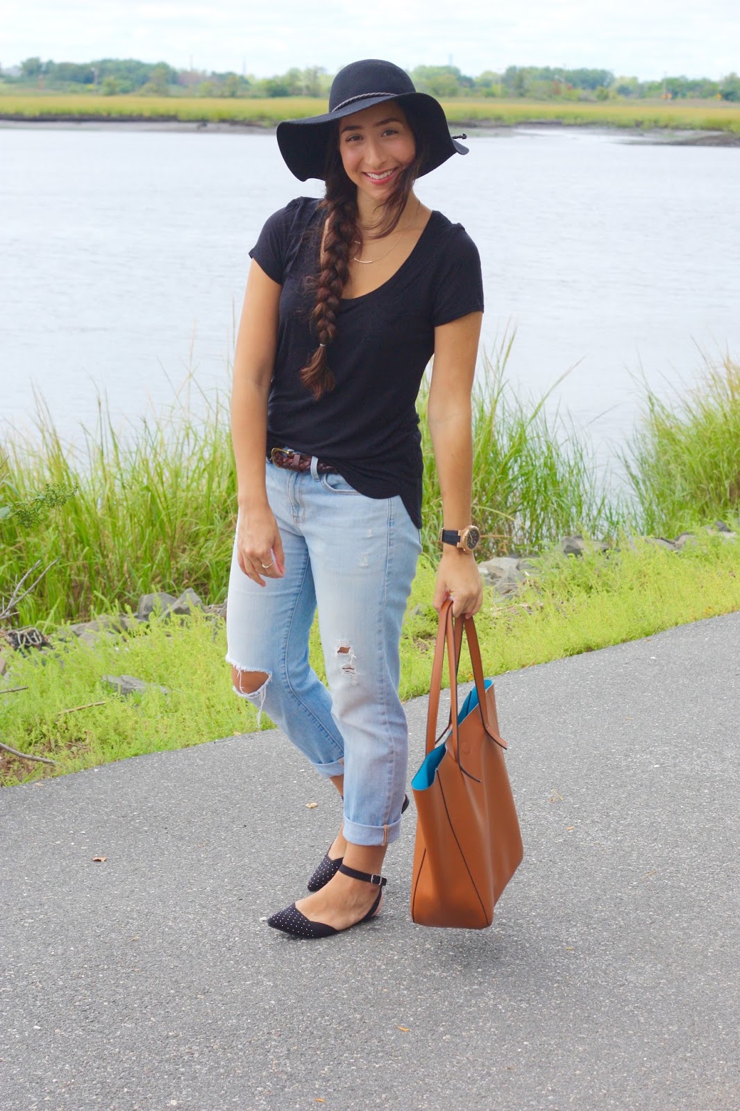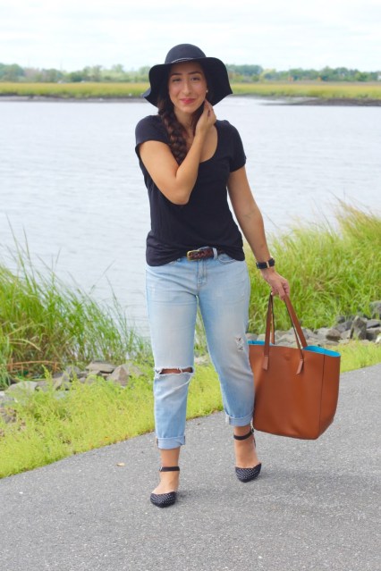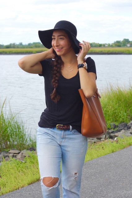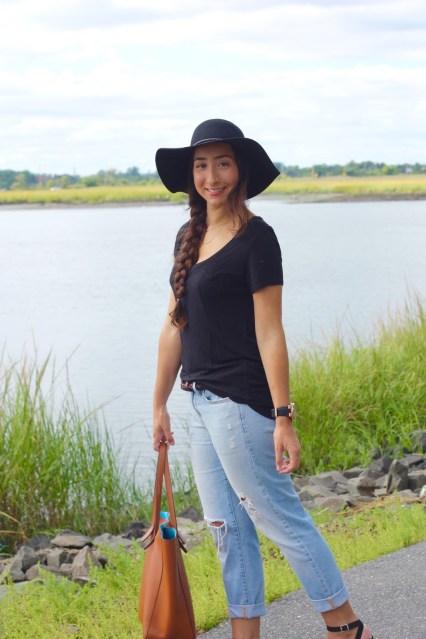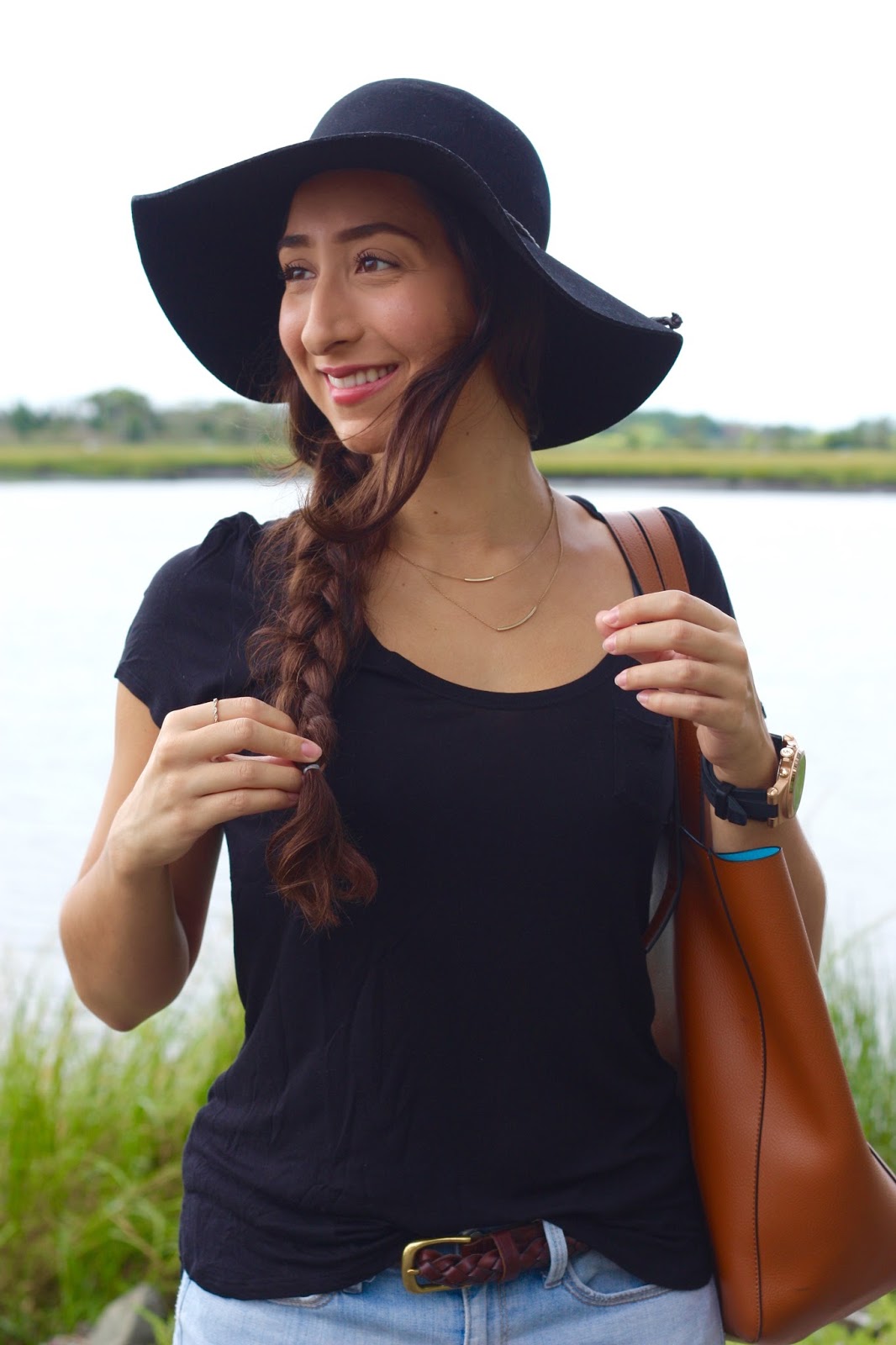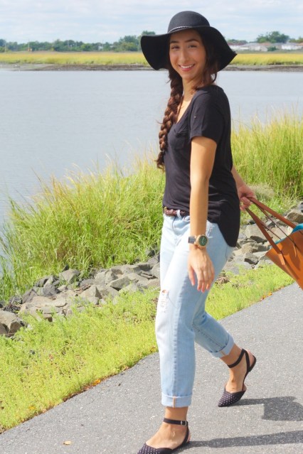 So when the weather for this day said 75 and low humidity, I thought “YOU MEAN HATS?” I paired this floppy black hat with a super casual outfit for a lunch date and running some errands.
