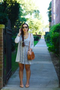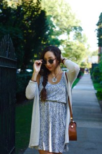 Dress: H&M // Cardigan: H&M // Shoes: The Gap Factory Store – Sold Out – Similar // Bag: Zara // Sunglasses: Ray-Ban // Watch: Marc by Marc Jacobs