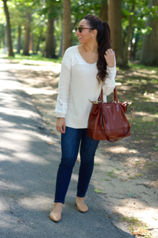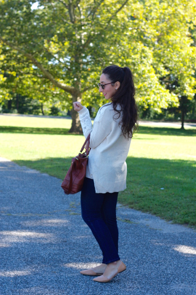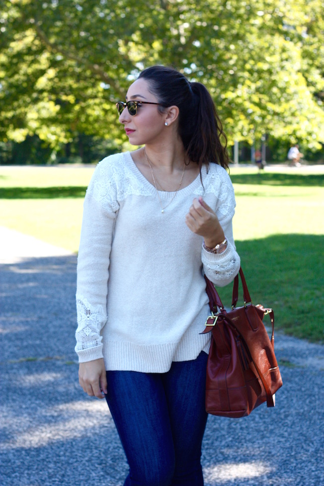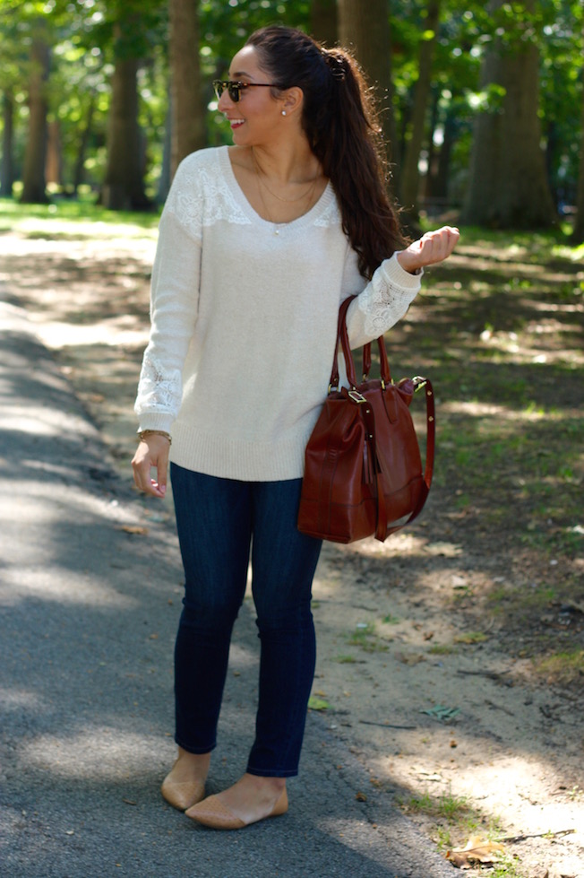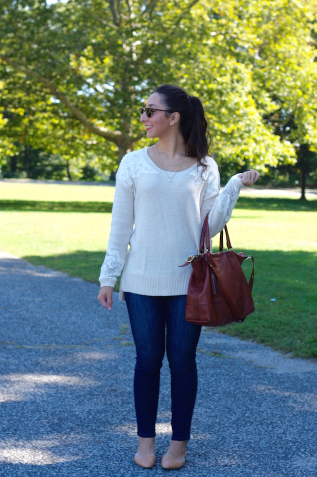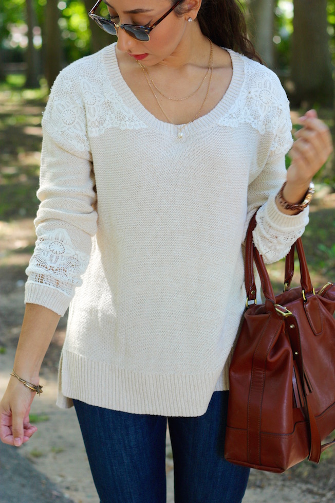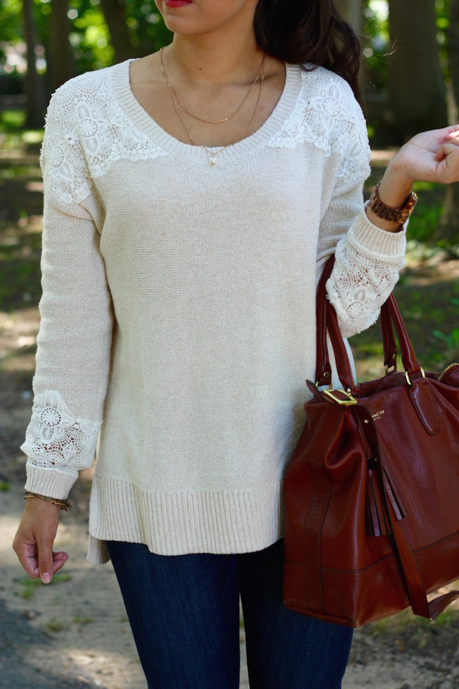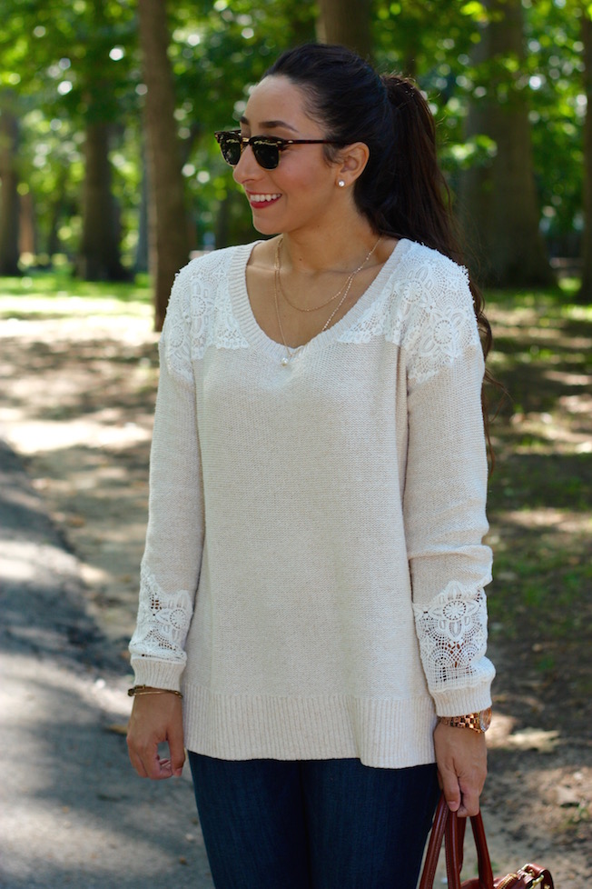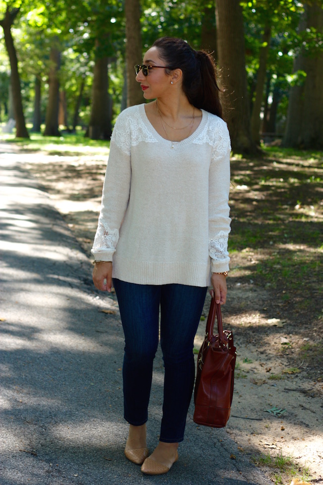 Love this look! Sweater is very pretty, lacy details are beautiful.