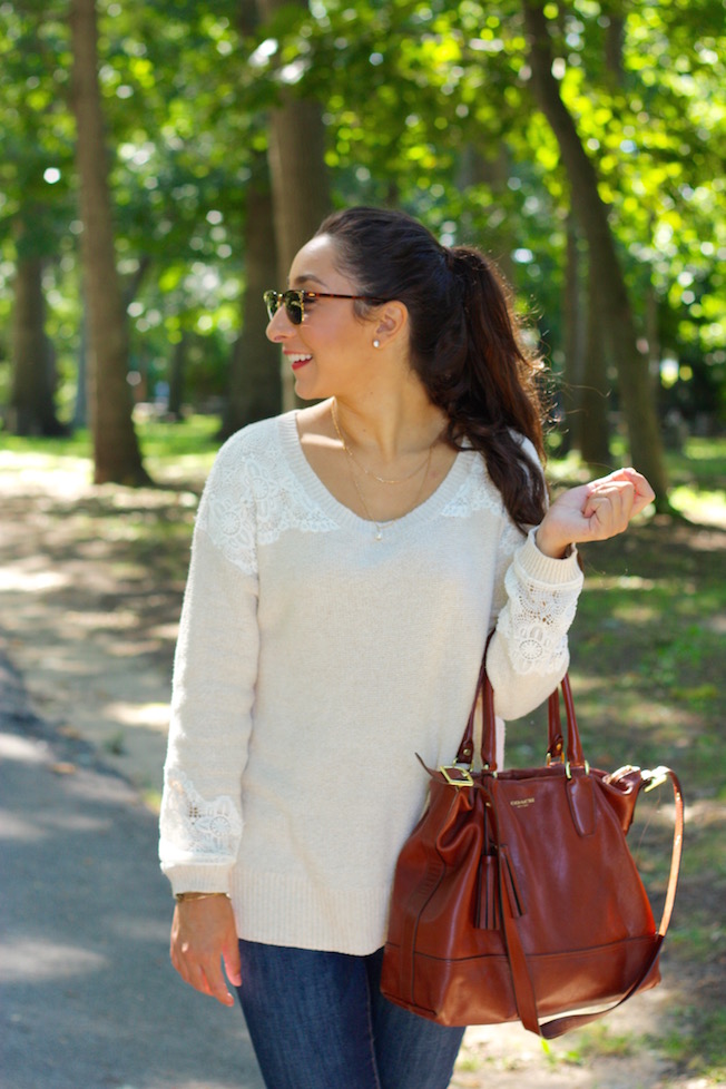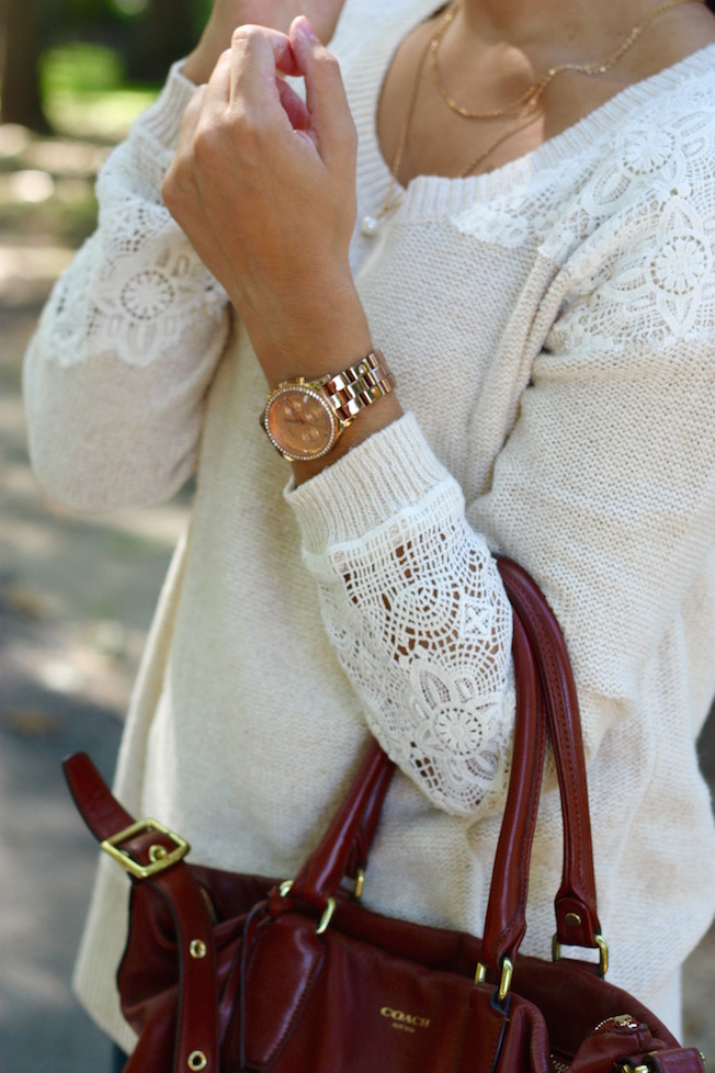 Sweater: LC Lauren Conrad // Jeans: LC Lauren Conrad // Sunglasses: Ray-Ban // Shoes: Gap Factory (Sold Out – Similar) – Bag: Coach (Similar) // Necklace: Jonny Kay // Watch: Marc by Marc Jacobs
