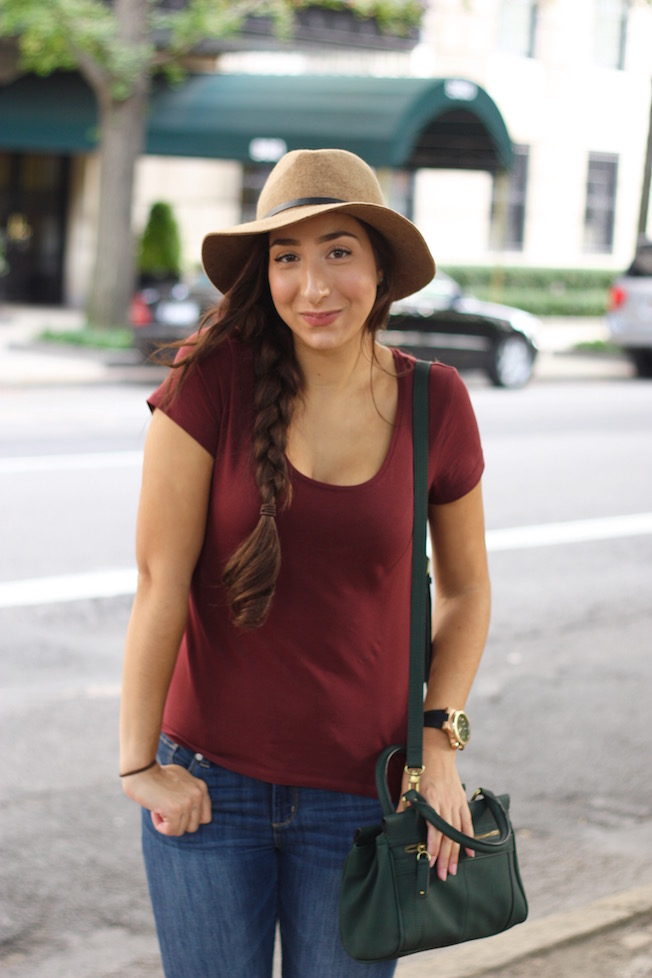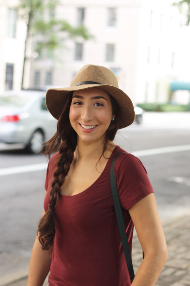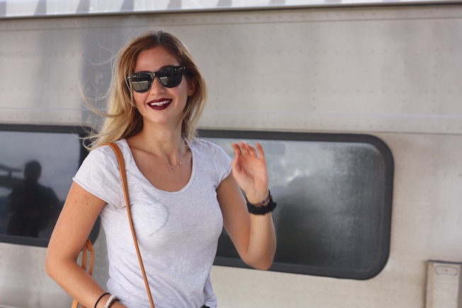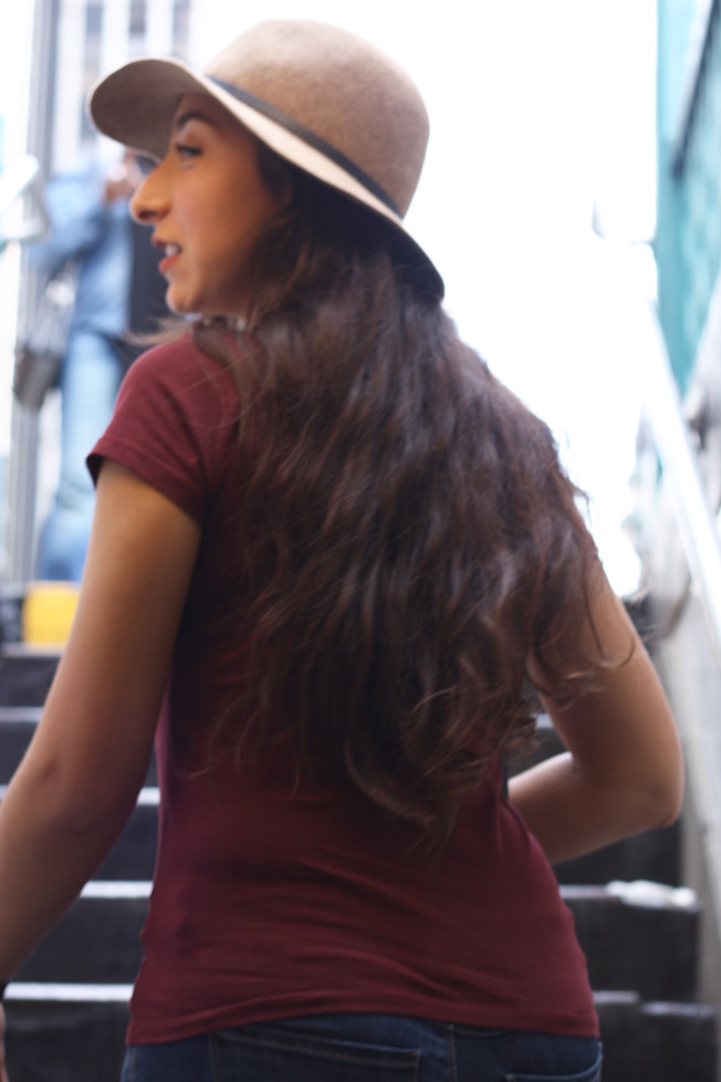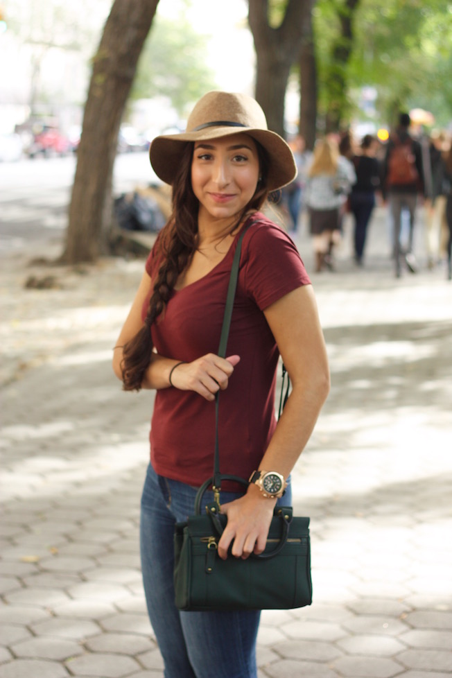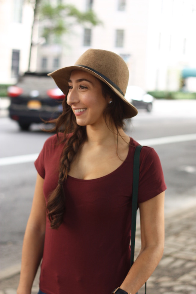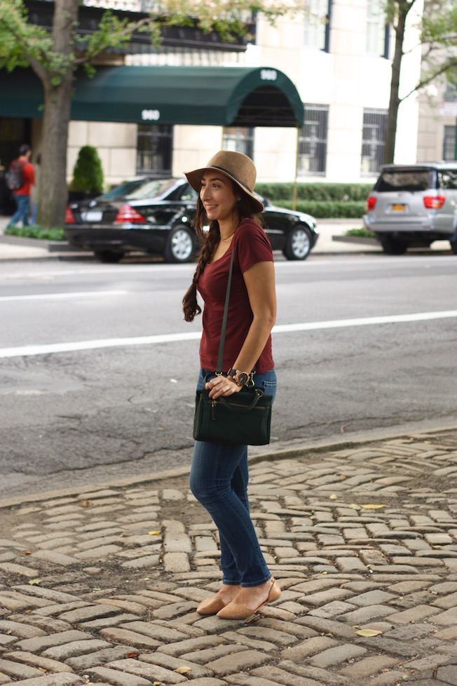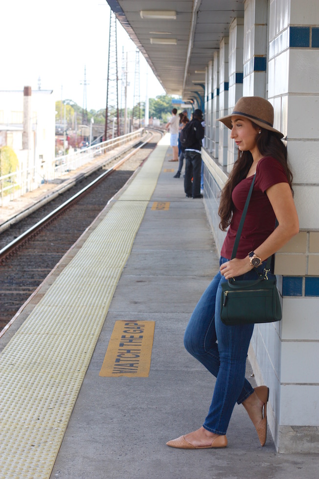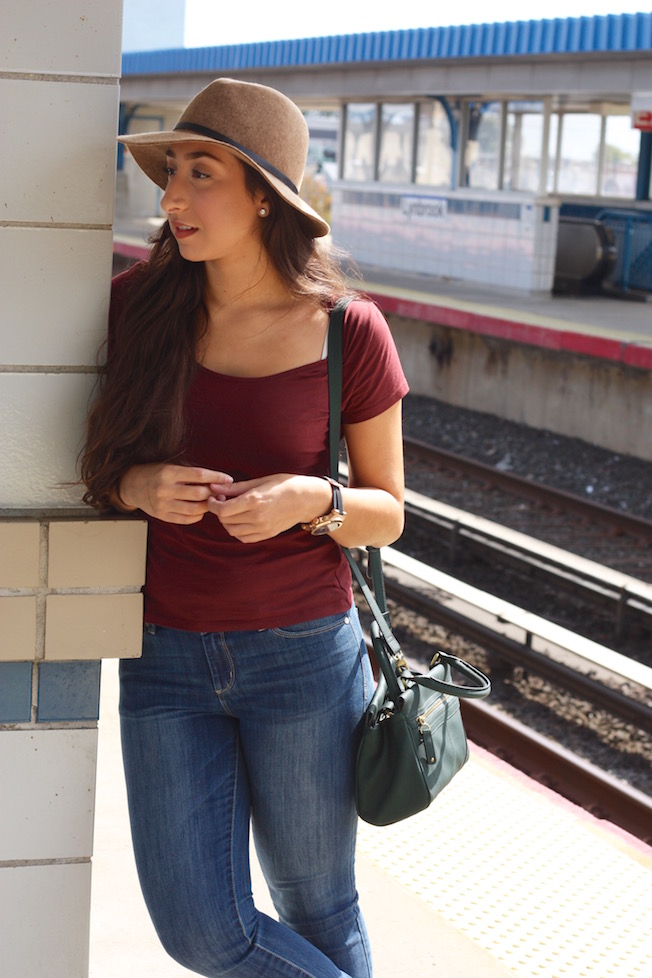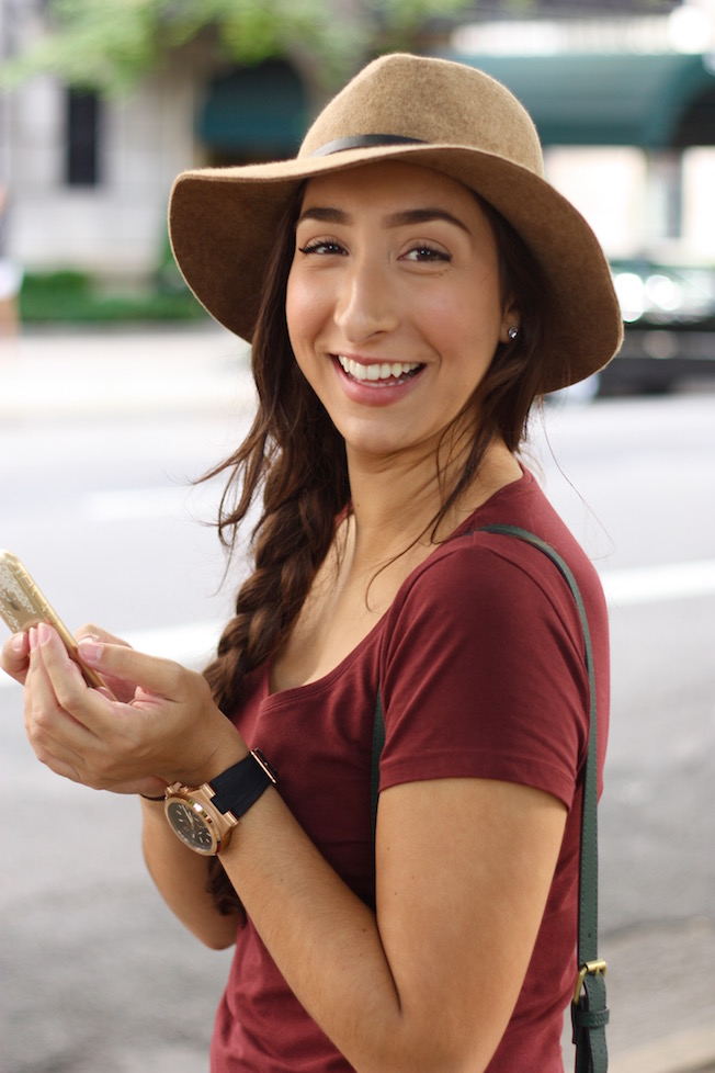 My Outfit – Shirt: H&M // Jeans: LC Lauren Conrad // Hat: Target // Bag: Target // Shoes: Gap Factory (Sold Out – Similar Here) // Watch: Michael Kors // Kat’s Outfit – Shirt: Zara (Similar) // Jeans: Zara (Similar) // Sunglasses: Ray-Ban // Lipstick: MAC Lipstick in Media // Shoes: Cole Haan