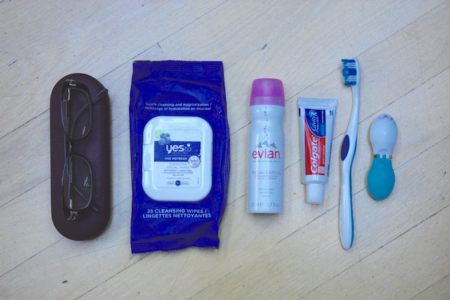 Then of course, I bring my contact case, glasses, toothpaste, and a toothbrush to give my eyes a break and freshen my mouth, especially for a long flight.