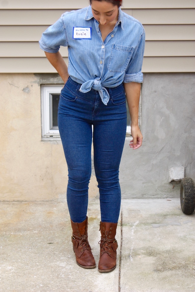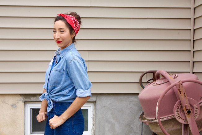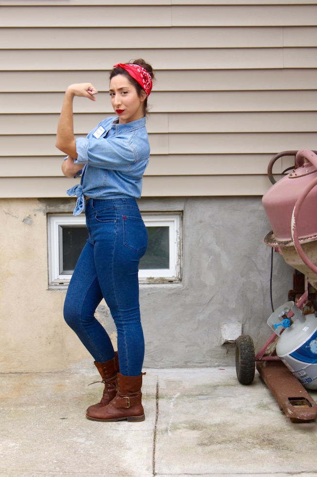 So of course, every year I go all out and I usually do a DIY costume but this year I was just so busy that I left picking a costume until the last minute and did not know what I was going to be. I figured I would just end up wearing some cat ears or a witch’s hat and calling it a day. But then, two nights before, I thought, “just google ‘DIY halloween costumes’ and see what you find.” So I did and when I stumbled across Rosie the Riveter, I realized I literally have all the basics needed for this costume!
