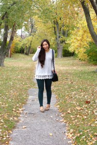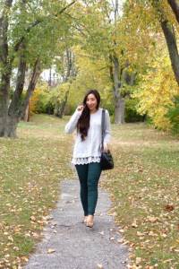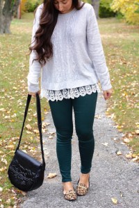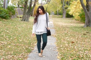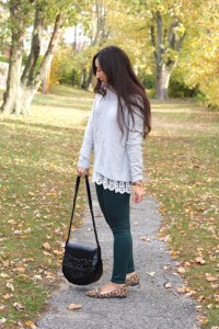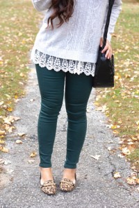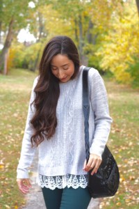 I’ve been obsessed with these lace-hem sweaters right now because the lace adds just that little pretty and feminine touch. This one is just the perfect length and soooo soft.