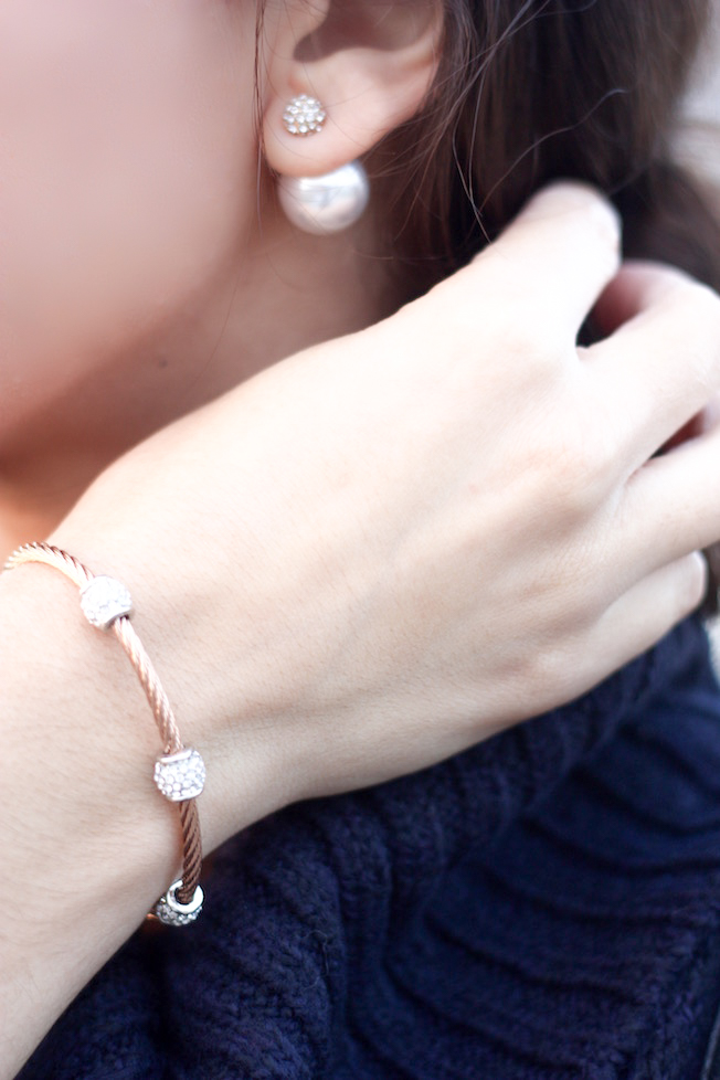 For this look I wore these Dior inspired pearl double-stud earrings (only $8! I MEAN. Come on.) and this studded cable bracelet (currently sold out but this is a David Yurman dupe for only $15 ::heart eyes::)