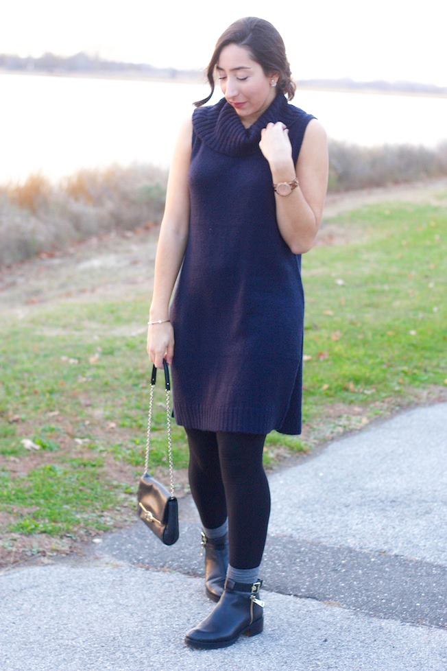 I paired these elegant and classic pieces with this cowl neck (again, can’t stop with the cowl necks I’m obsessed) long tunic from Halogen and put on some leggings underneath, but I also can’t wait to wear this with jeans! And for an extra added touch, I wore some high grey socks with my booties and scrunched them down.