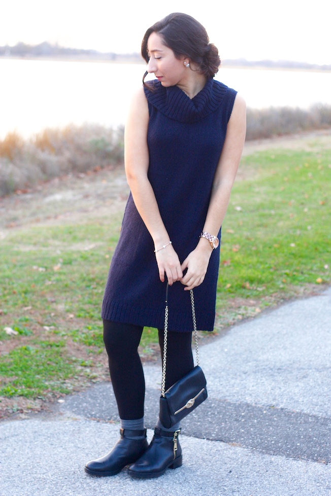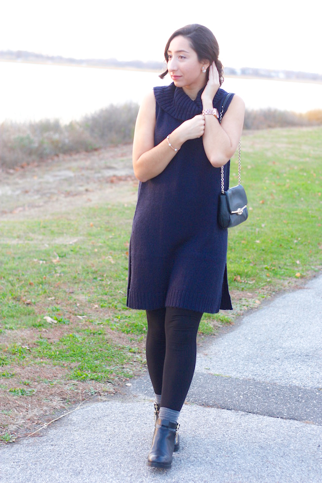 Sweater Dress: Halogen | Leggings: Gap | Clutch Bag: Coach (Similar!) | Booties: Zara (Similar here) | Watch: Marc by Marc Jacobs
