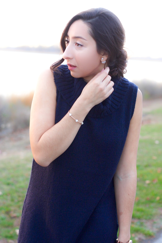 For this look I wore these Dior inspired pearl double-stud earrings (only $8! I MEAN. Come on.) and this studded cable bracelet (currently sold out but this is a David Yurman dupe for only $15 ::heart eyes::)