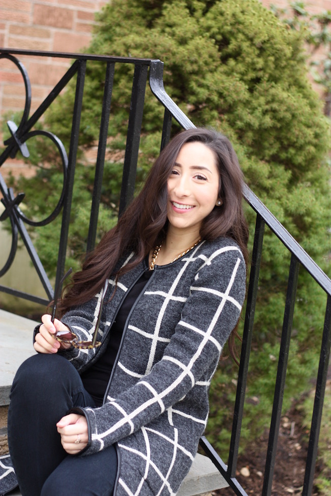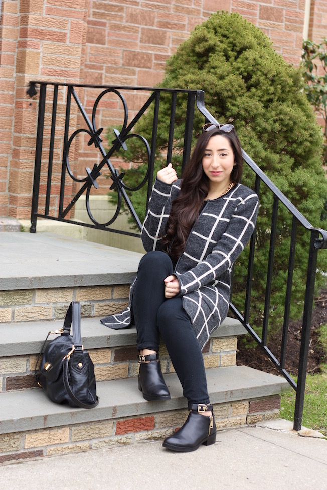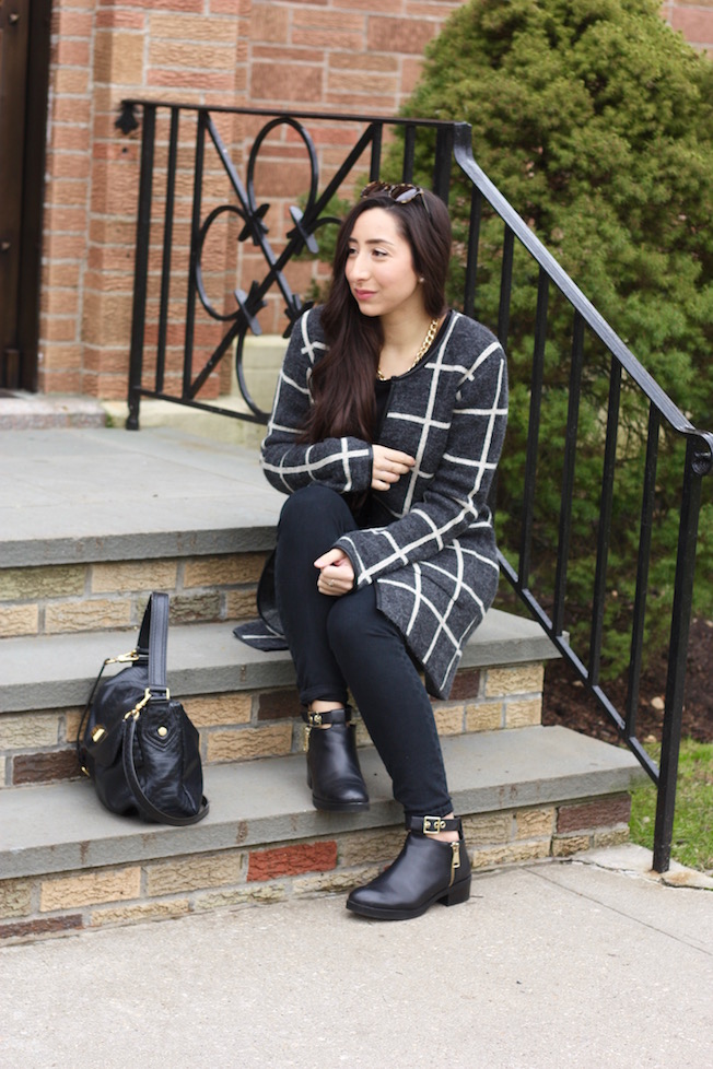 I styled it really simple in all black and gold details (as always) to let the cardigan really stand out.