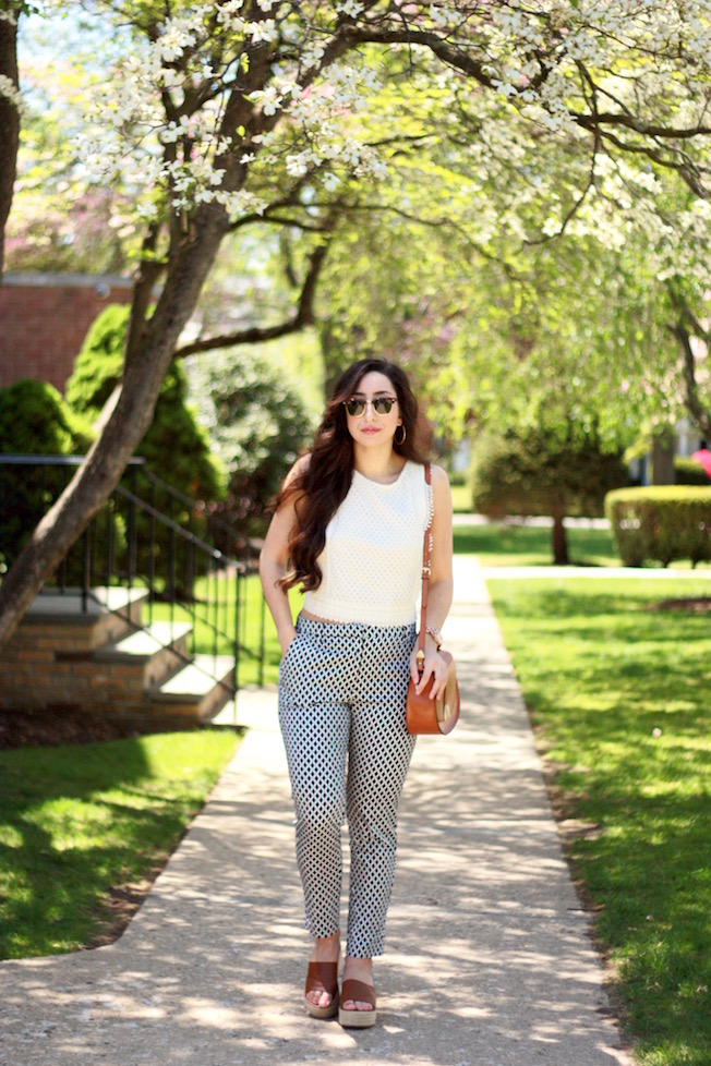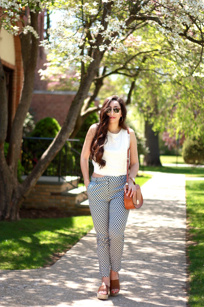 Top: H&M | Pants: H&M | Sandles: Forever 21 | Bag: Zara (similar here) | Sunglasses: Ray-Ban | Watch: Marc by Marc Jacobs