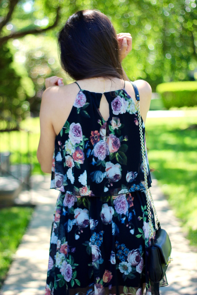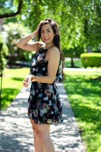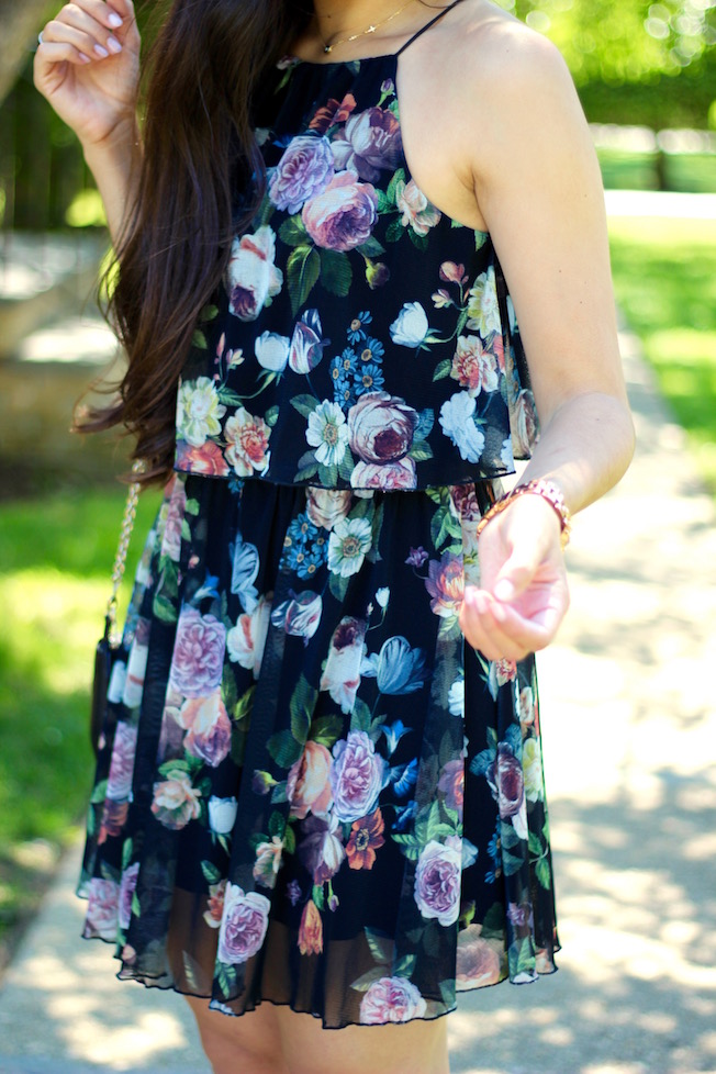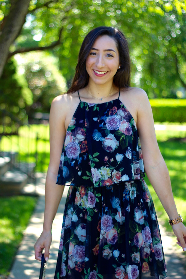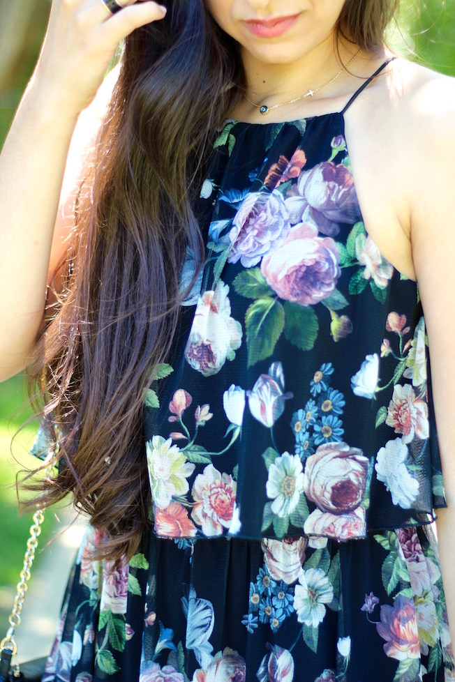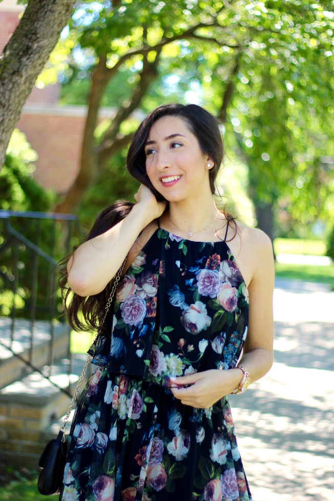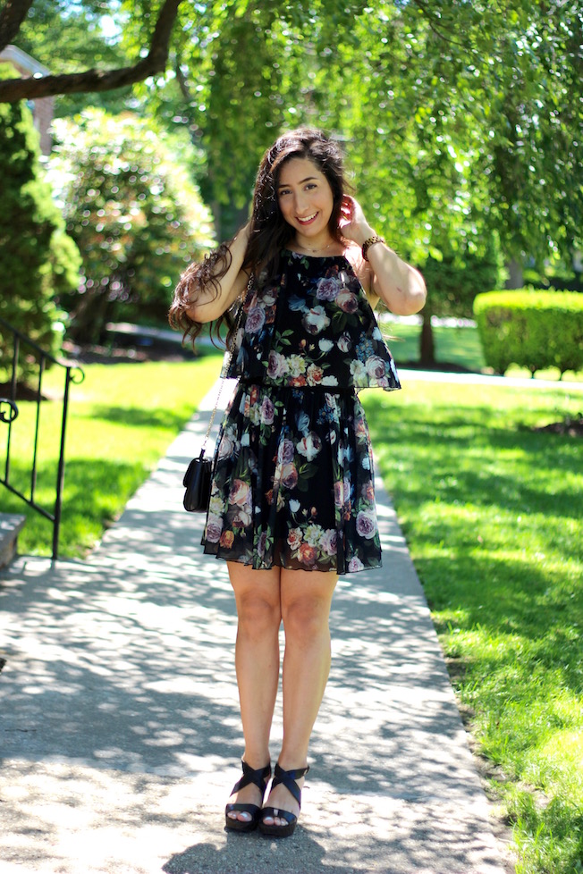 I wore this cute little floral dress for my graduation and it was just the perfect summery, comfy dress for the occasion.  I was debating between this dress and another one but I’m so happy I went with this one!  Even though the background behind the floral designs is black it’s still such a light and colorful dress that screams summer.