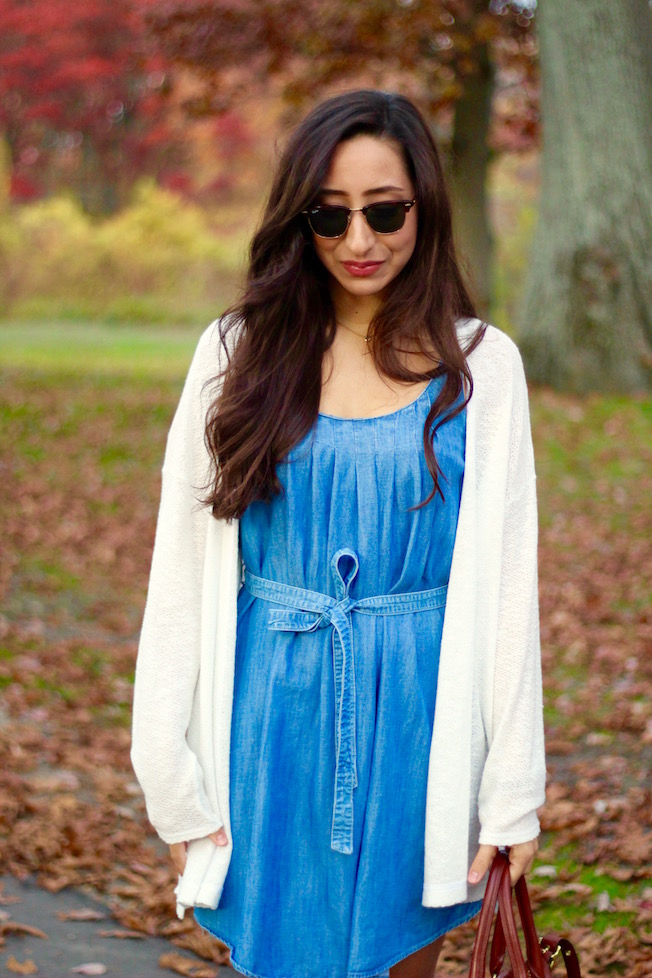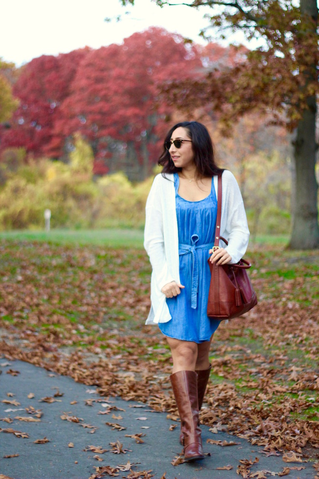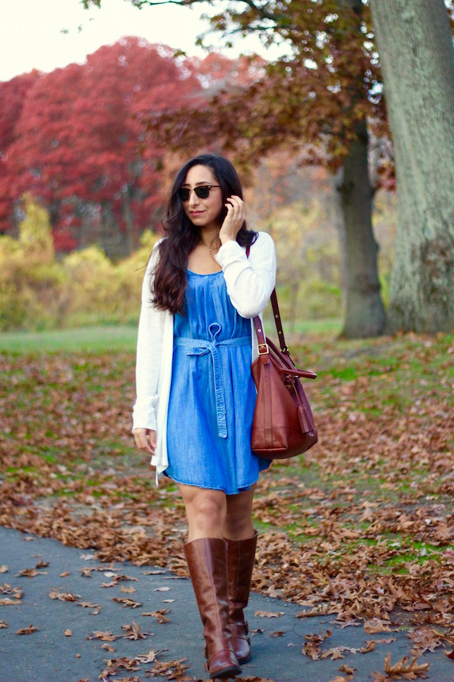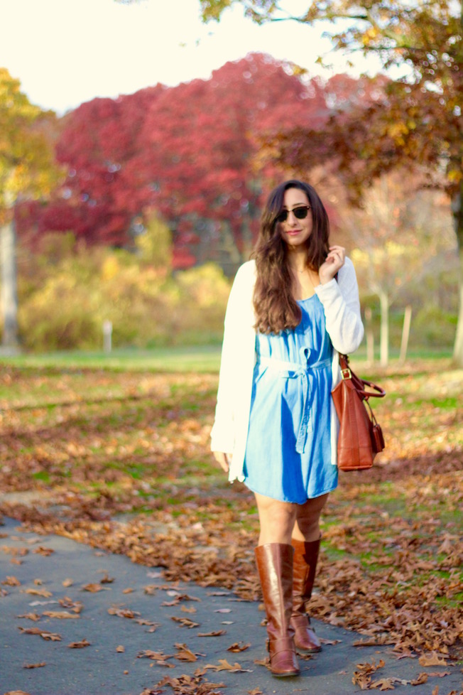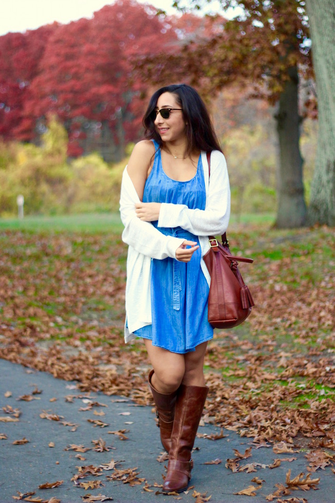 Throw it back! Whip out those sundresses you wore all summer, you’re not finished with them just yet! Do you have any that have a pretty floral pattern or a chambray material? Pair it with some riding boots and a long neutral colored cardigan and it’s automatically a fall outfit. Throw on some dark tights underneath if you want another layer just to keep warm, up to you! This is such a cute little outfit if you’re going to someone else’s house for the day because you’ll be comfortable in a few light layers and you’ll be a teeny bit dressed up with just the right amount of laid back casual-ness.