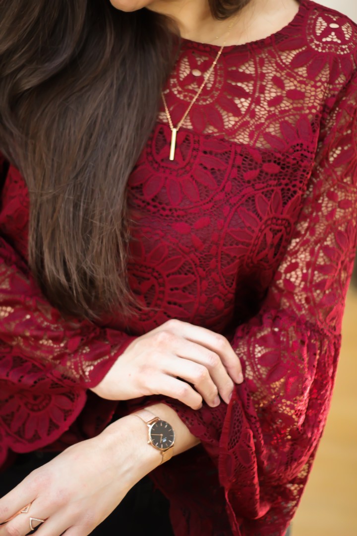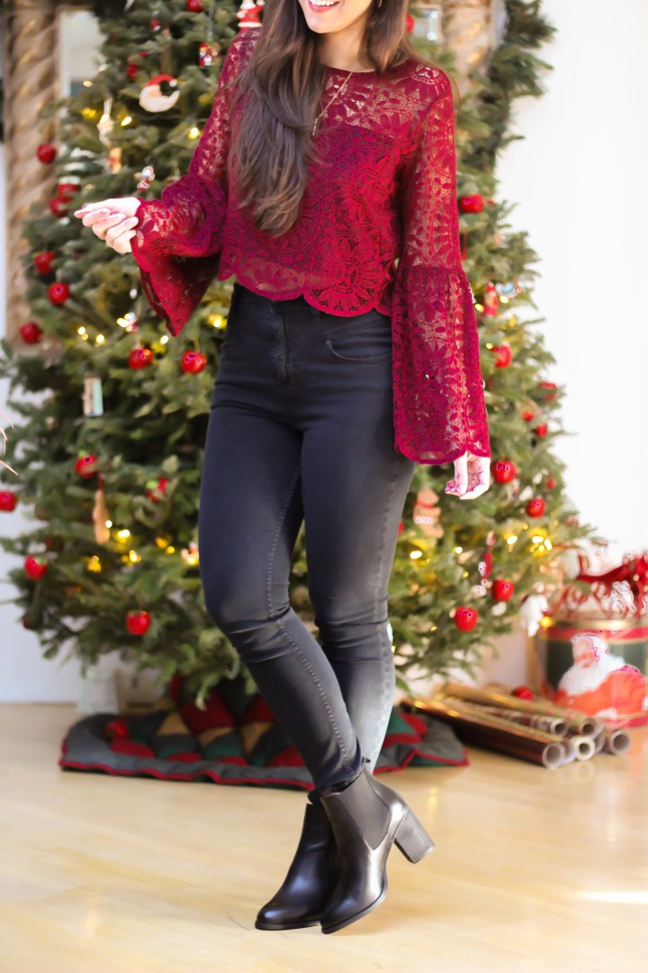 I wore this outfit to a Christmas party this month and I’m so obsessed! This top is from Target and the bell sleeves are so flattering. It’s perfect for the holidays and would totally work for New Year’s Eve.